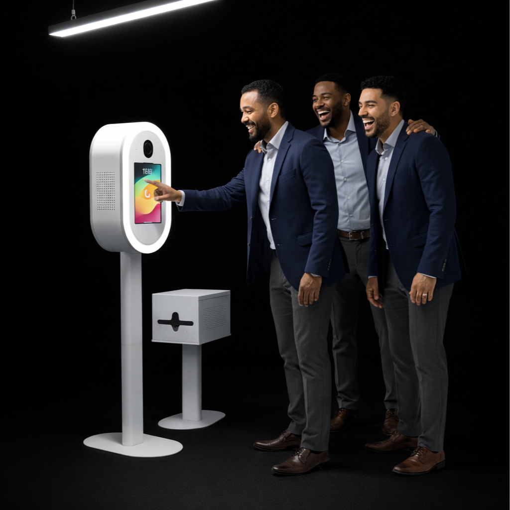Our sleek iPad photo booth delivers a fun, modern photo experience perfect for any celebration. With a clean design, vibrant lighting, and instant digital sharing, guests can capture photos, GIFs, and boomerangs in seconds.